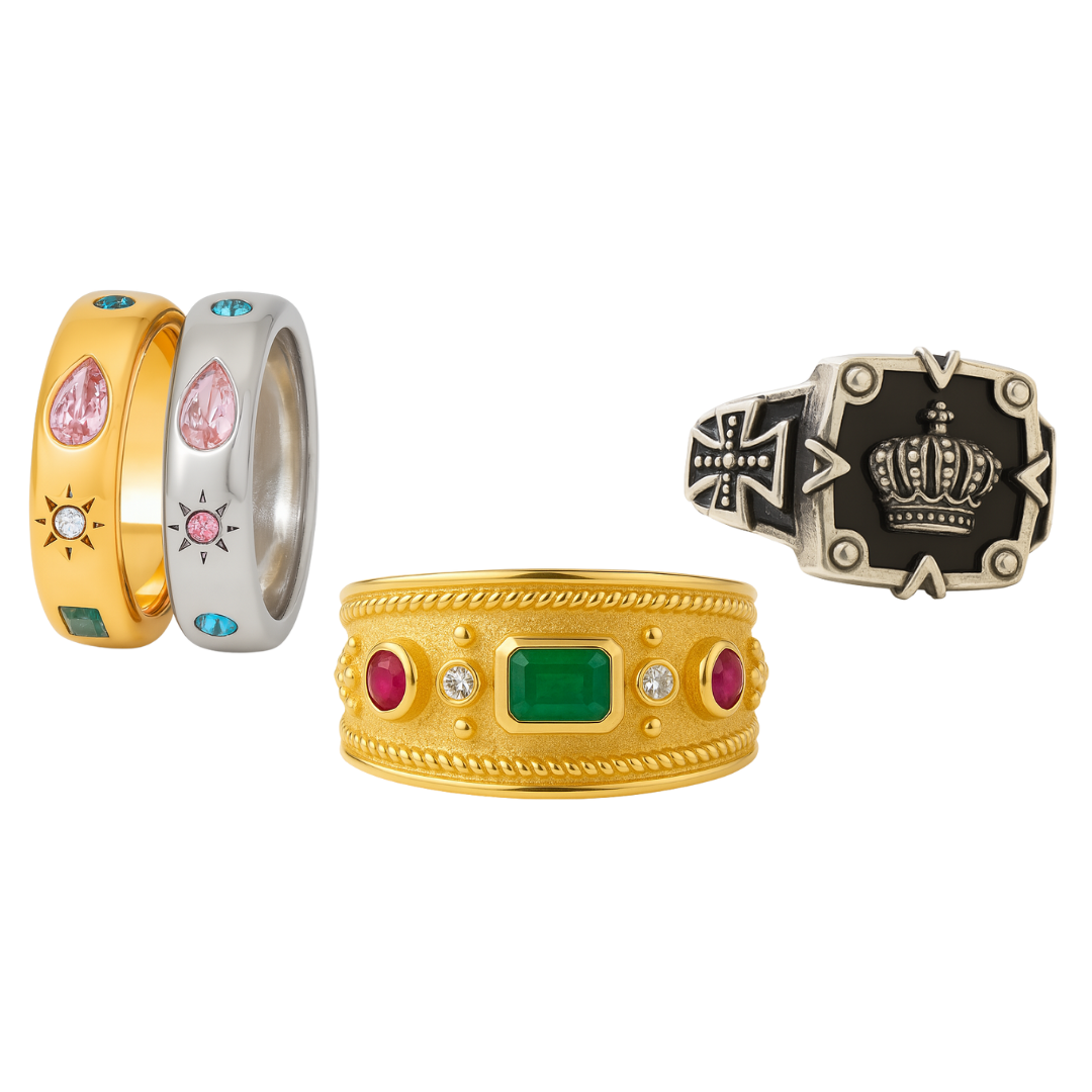 We treat jewelry as art — each piece is inspired by history, sculpture, or emotion. From the Michelangelo Ring’s sculpted face to the Faces & Places Ring’s Picasso-like shapes, every design is unique and unlike anything you can fine anywhere else.